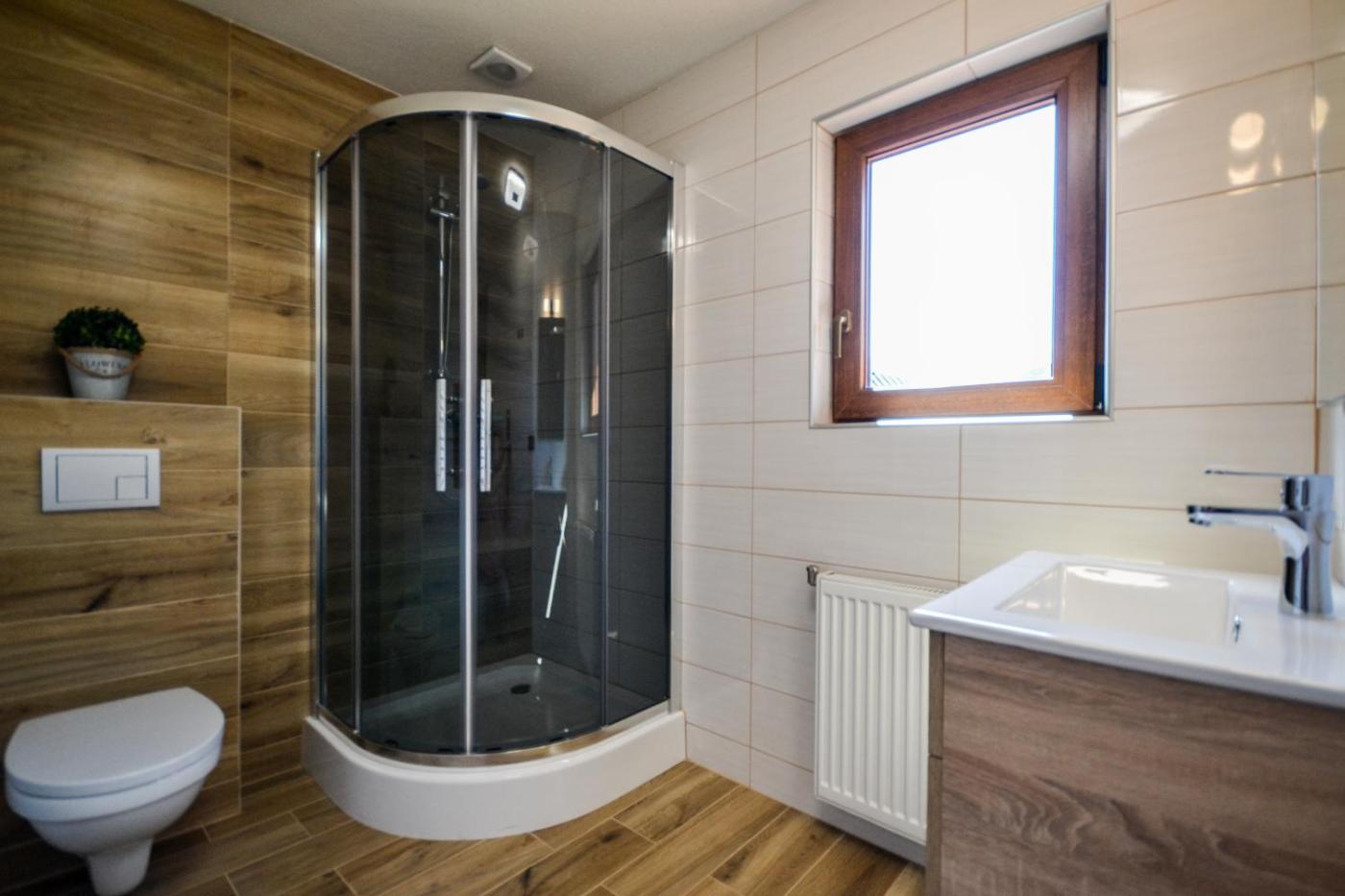 Pokój Czteroosobowy. A room with wooden walls, that features a flat-screen TV with satellite channels, an electric kettle and a bathroom with a shower, as well as nice views of the area. Pokój Czteroosobowy - 4 osobowy. Powierzchnia pokoju ok.: 20 mkw. ;