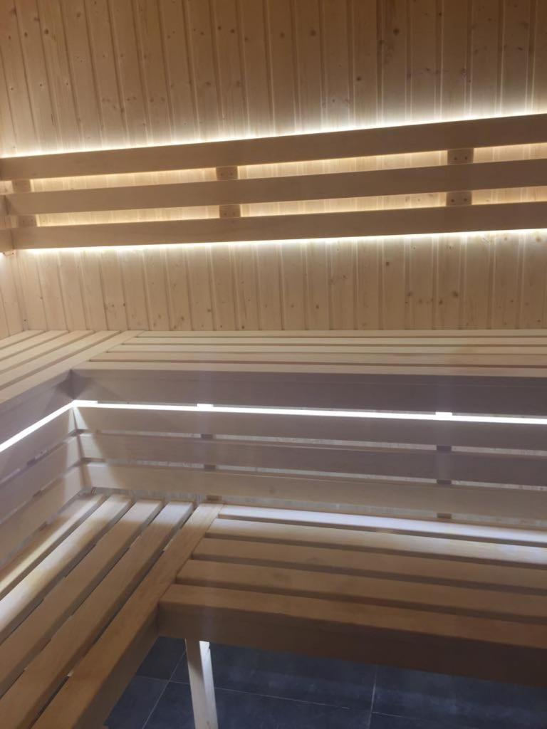 Zaplecze odnowy biologicznej obiektu Apartament HALNICA Pod Skocznią - JACUZZI & Sauna, Parking obejmuje saunę i wannę z hydromasażem.