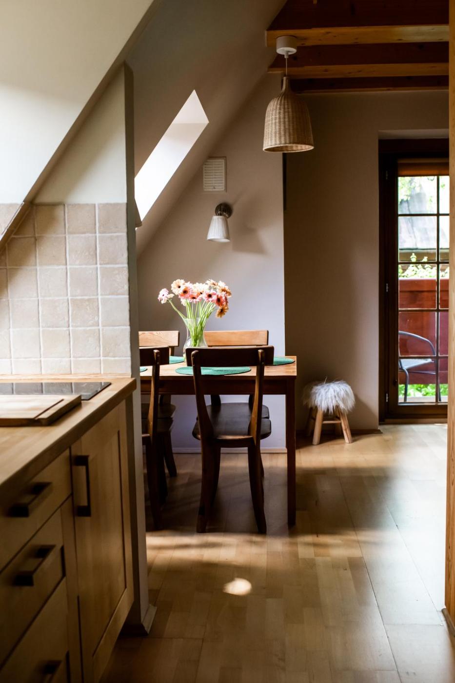 Apartament Wiewiórka. Apartament ten wyposażony jest w czajnik elektryczny, kuchenkę mikrofalową i płytę kuchenną. Udogodnienia obejmują także w pełni wyposażoną kuchnię i jadalnię. Apartament - 5 osobowy. Powierzchnia pokoju ok.: 55 mkw. ;